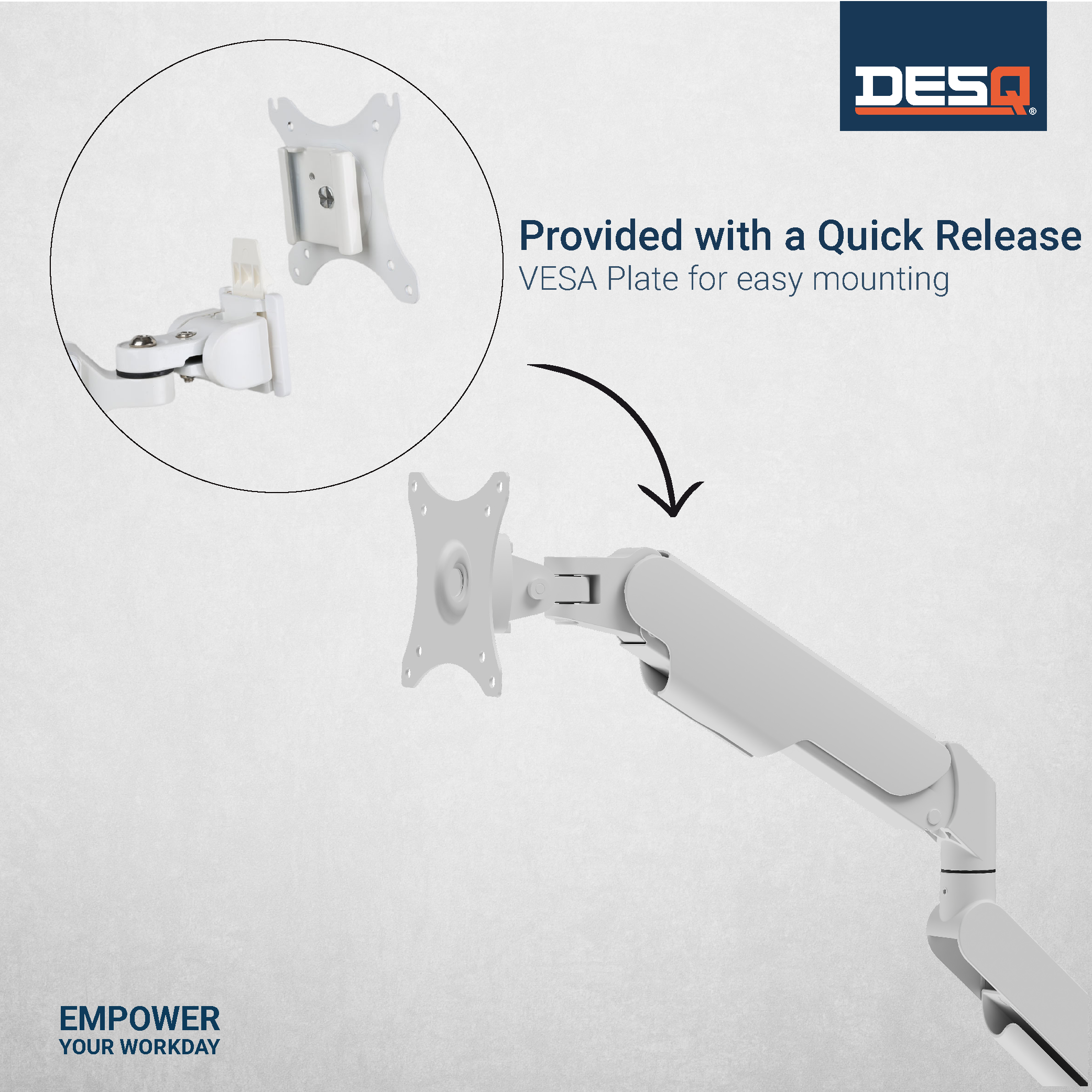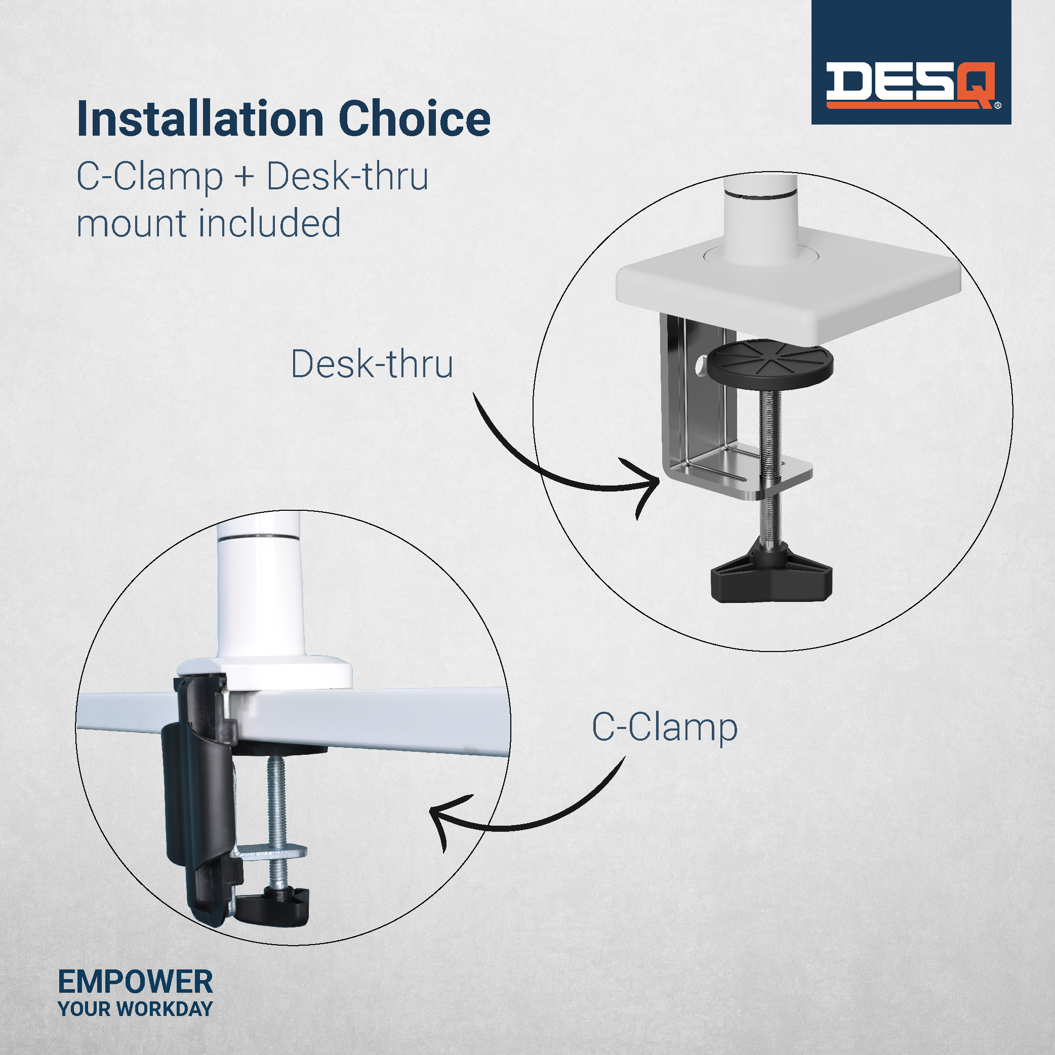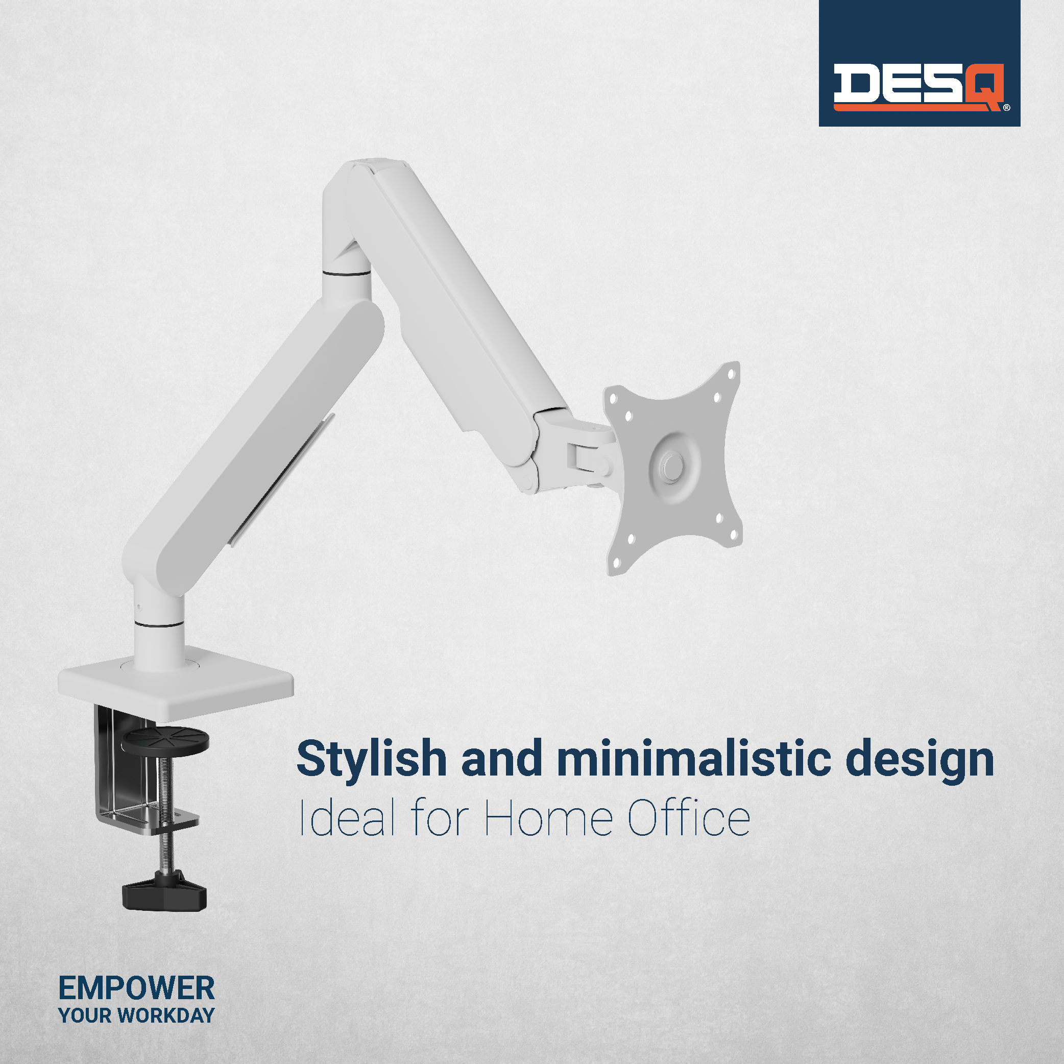 Que ce soit au bureau ou à la maison, si nous travaillons beaucoup derrière un écran, un bras de moniteur réglable est indispensable. Avec un bras de moniteur DESQ, vous pouvez régler la hauteur, la distance et l'angle d'un moniteur. Pour éviter la fatigue du dos, de la nuque et des yeux. Un autre avantage est l'espace de travail supplémentaire créé sur le bureau !