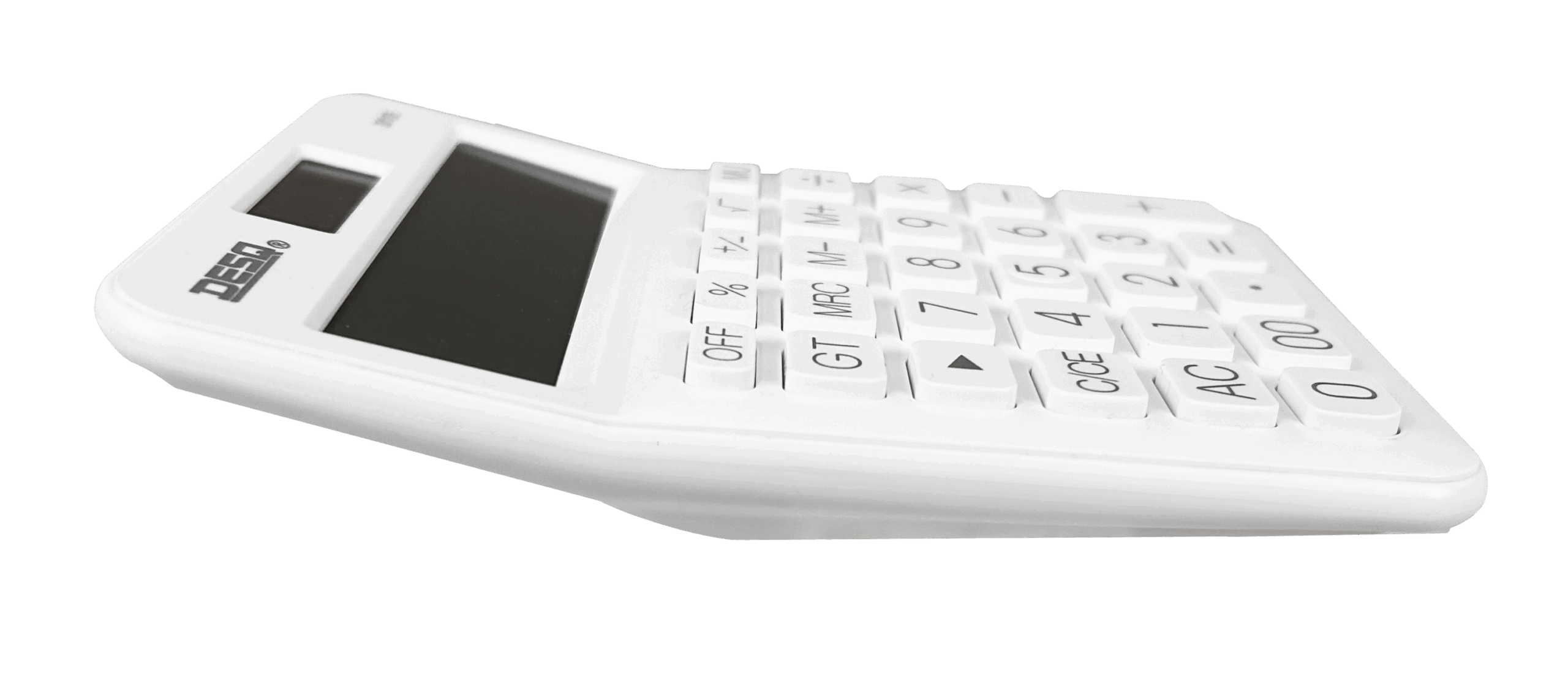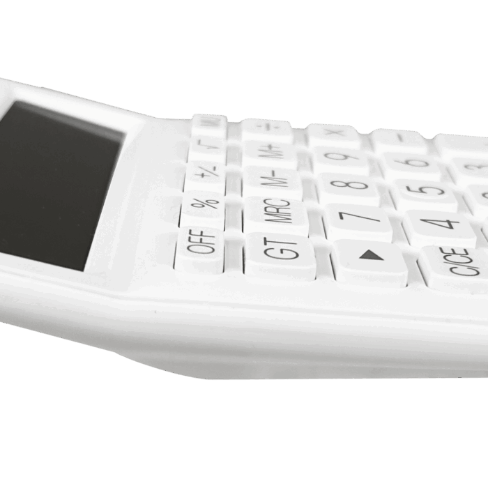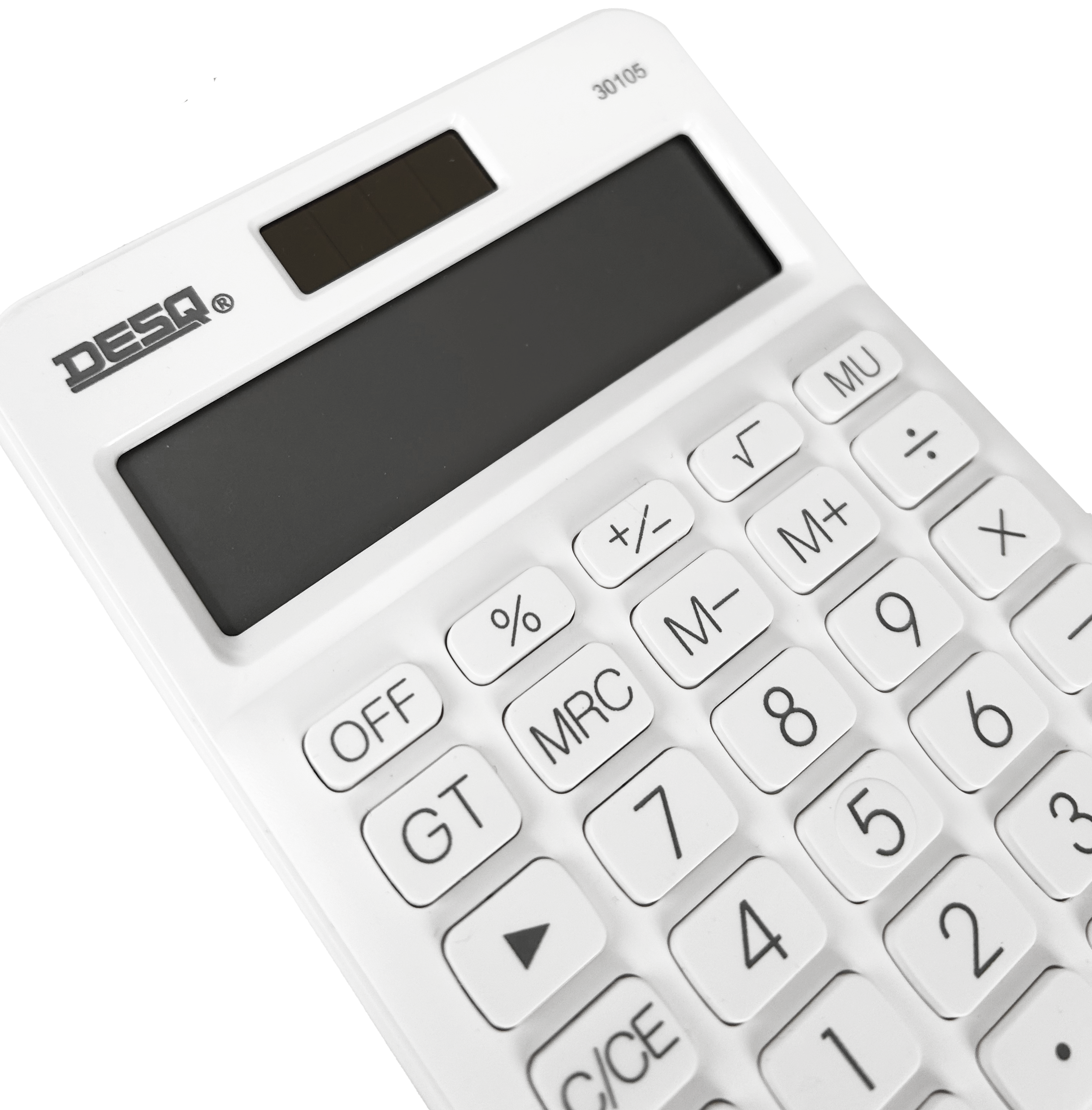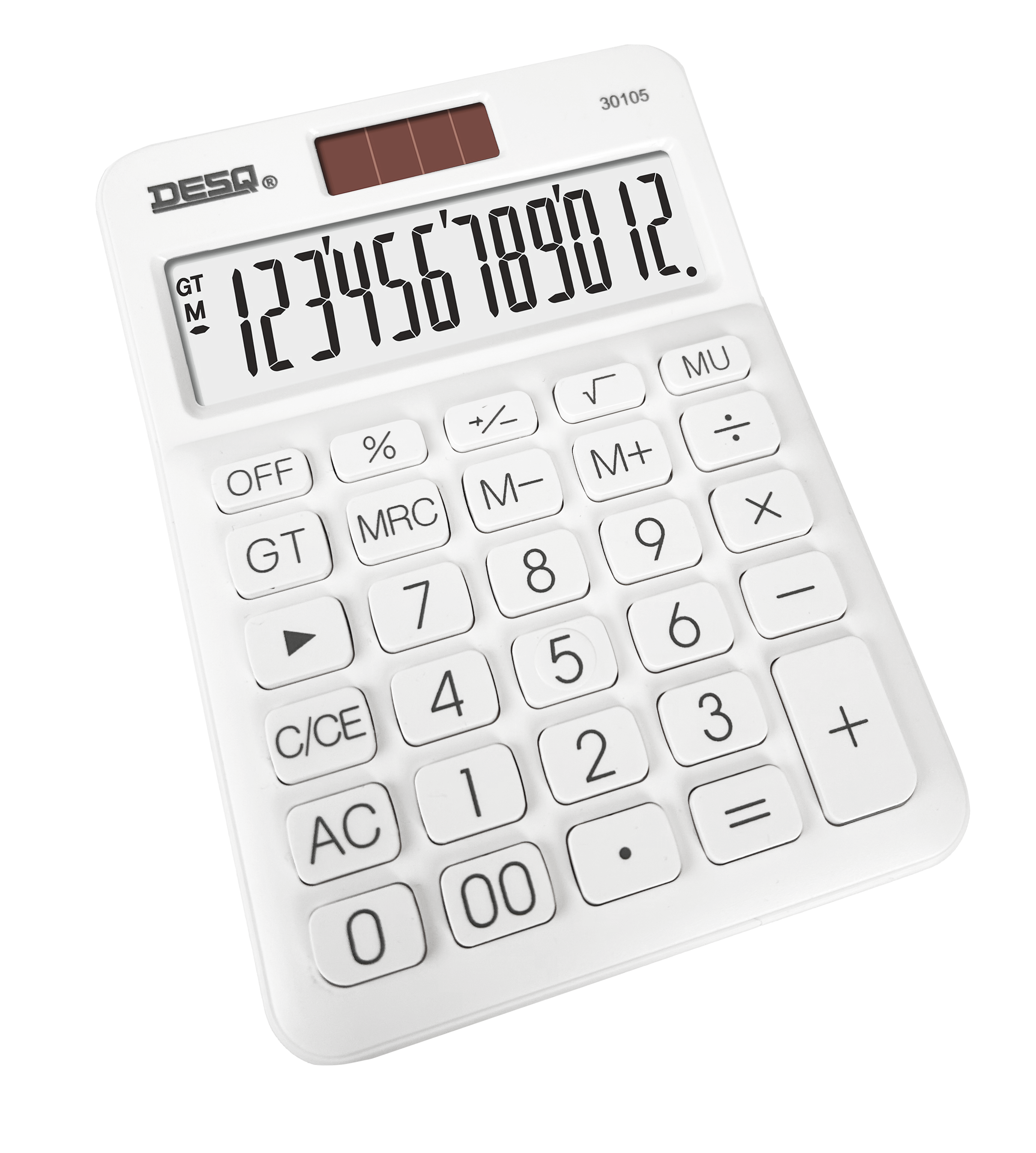 Een compacte en efficiënte bureau rekenmachine met 12 cijfers en dubbele voeding voor gemakkelijke en nauwkeurige berekeningen.