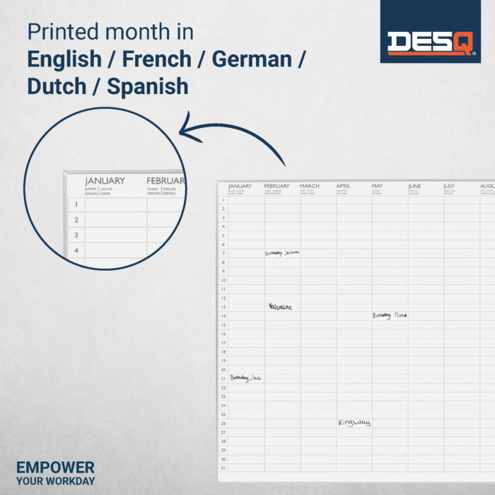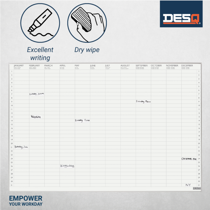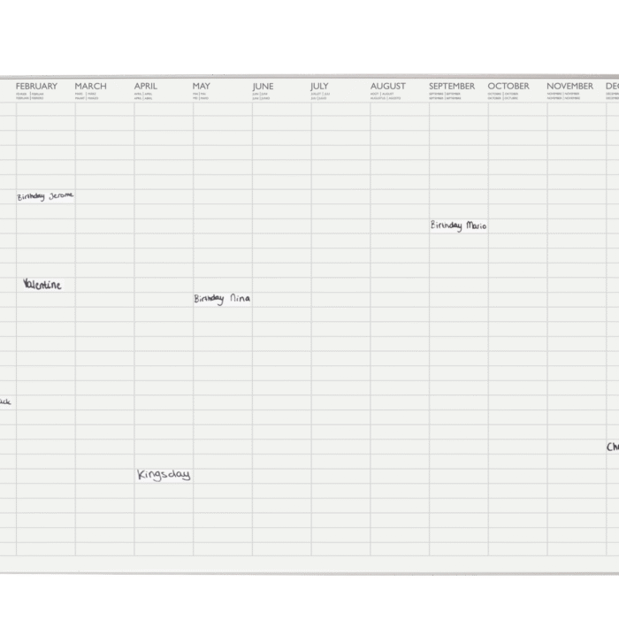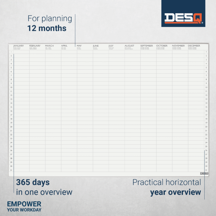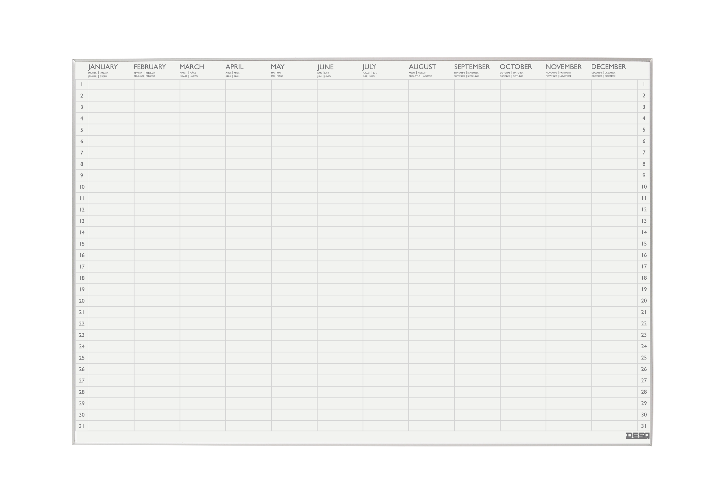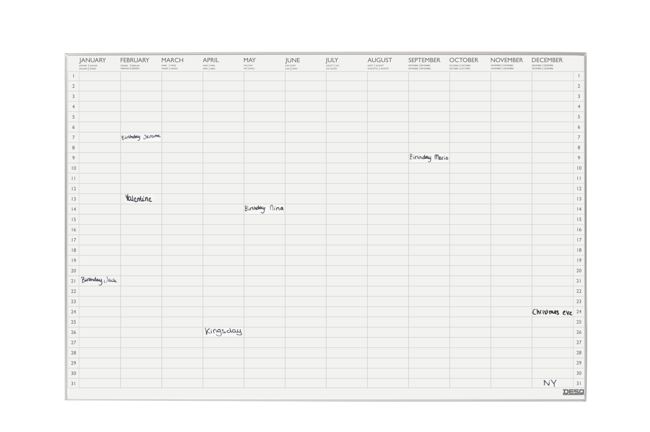 Voor nog beter overzicht zijn de dagen 1 / 31 aan beide zijde van het bord weergegeven.