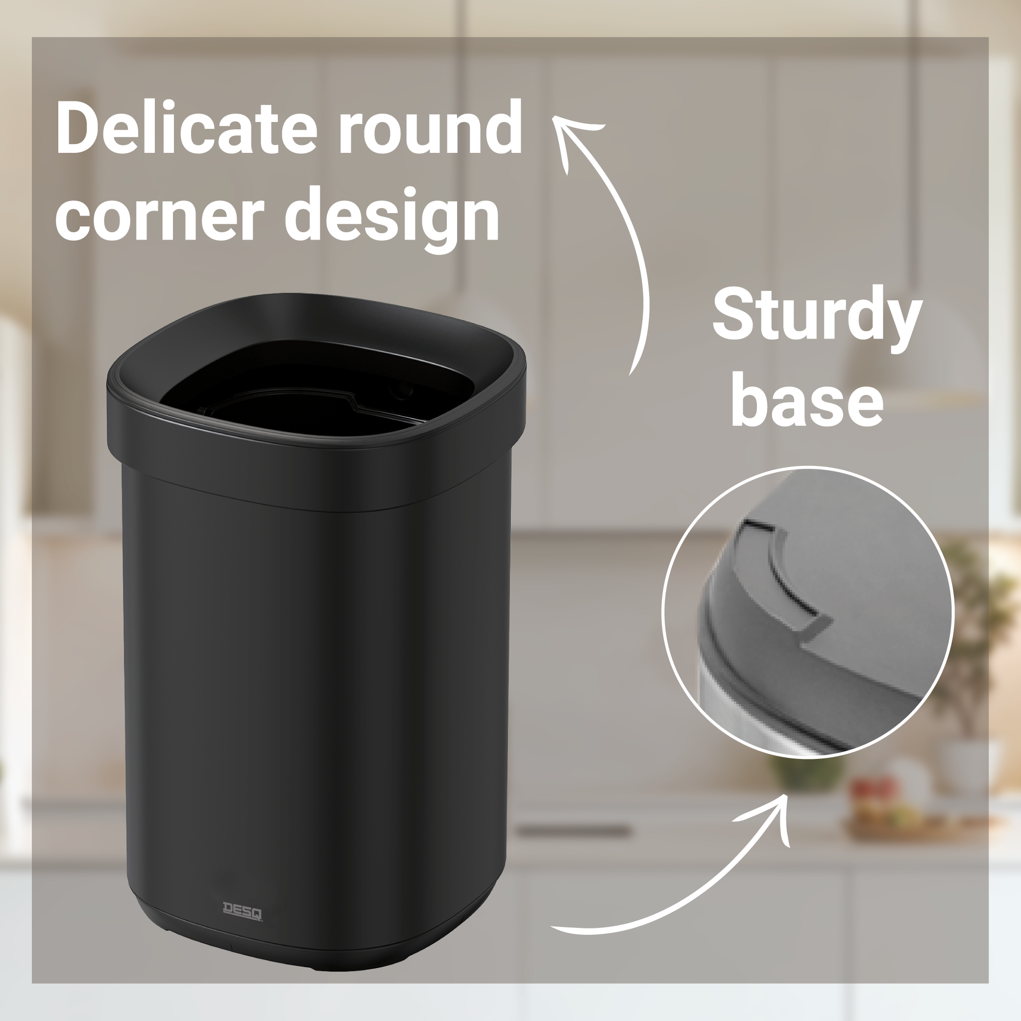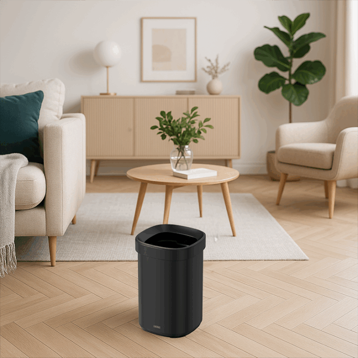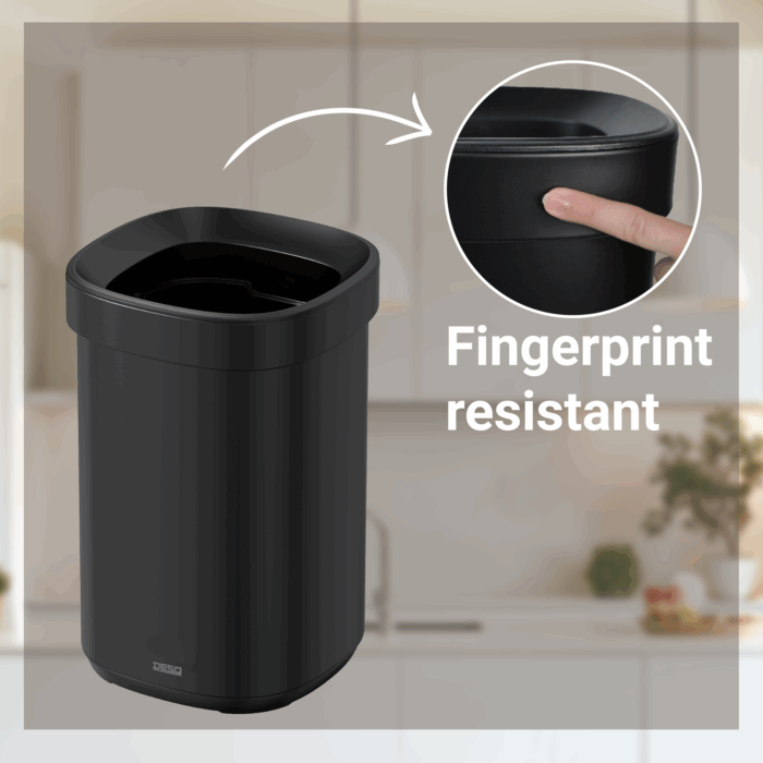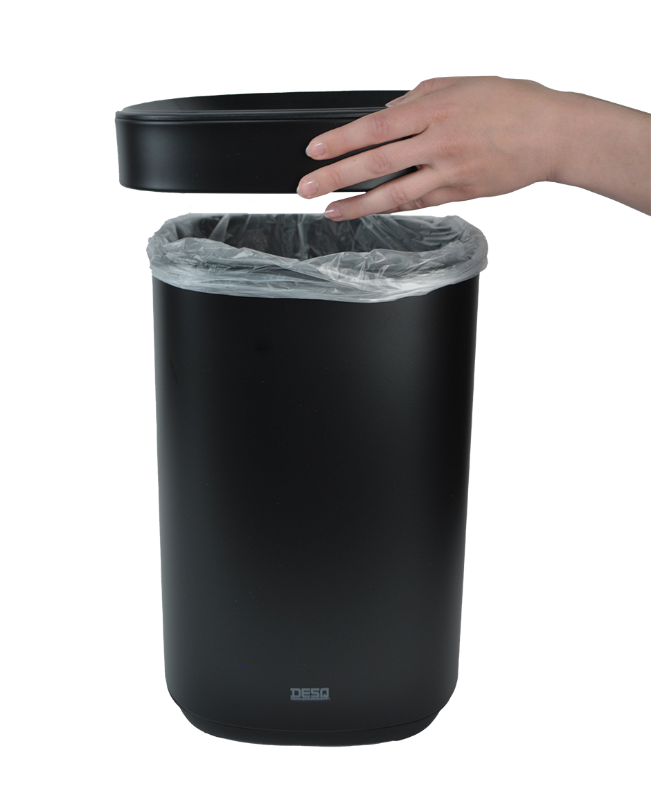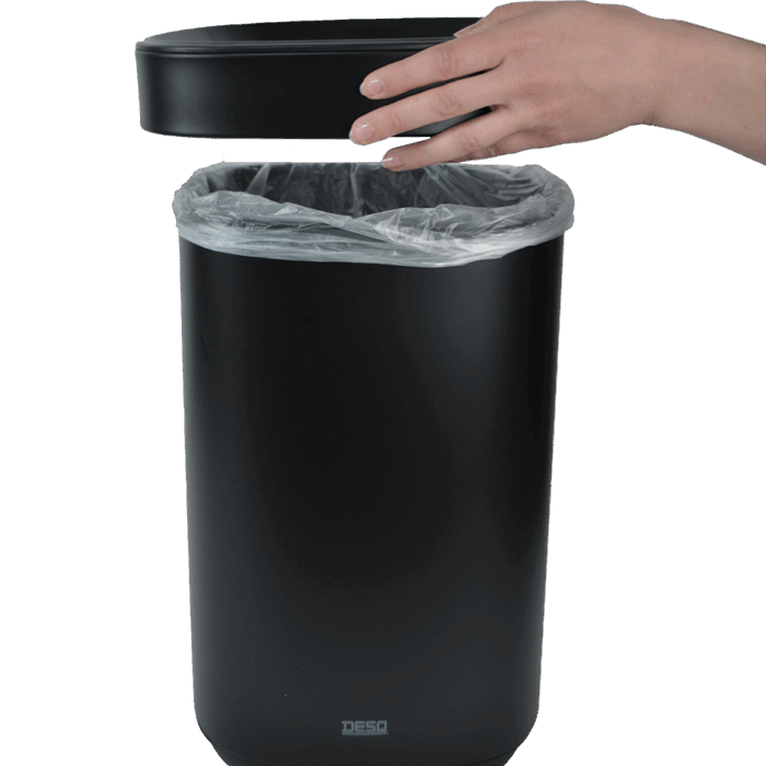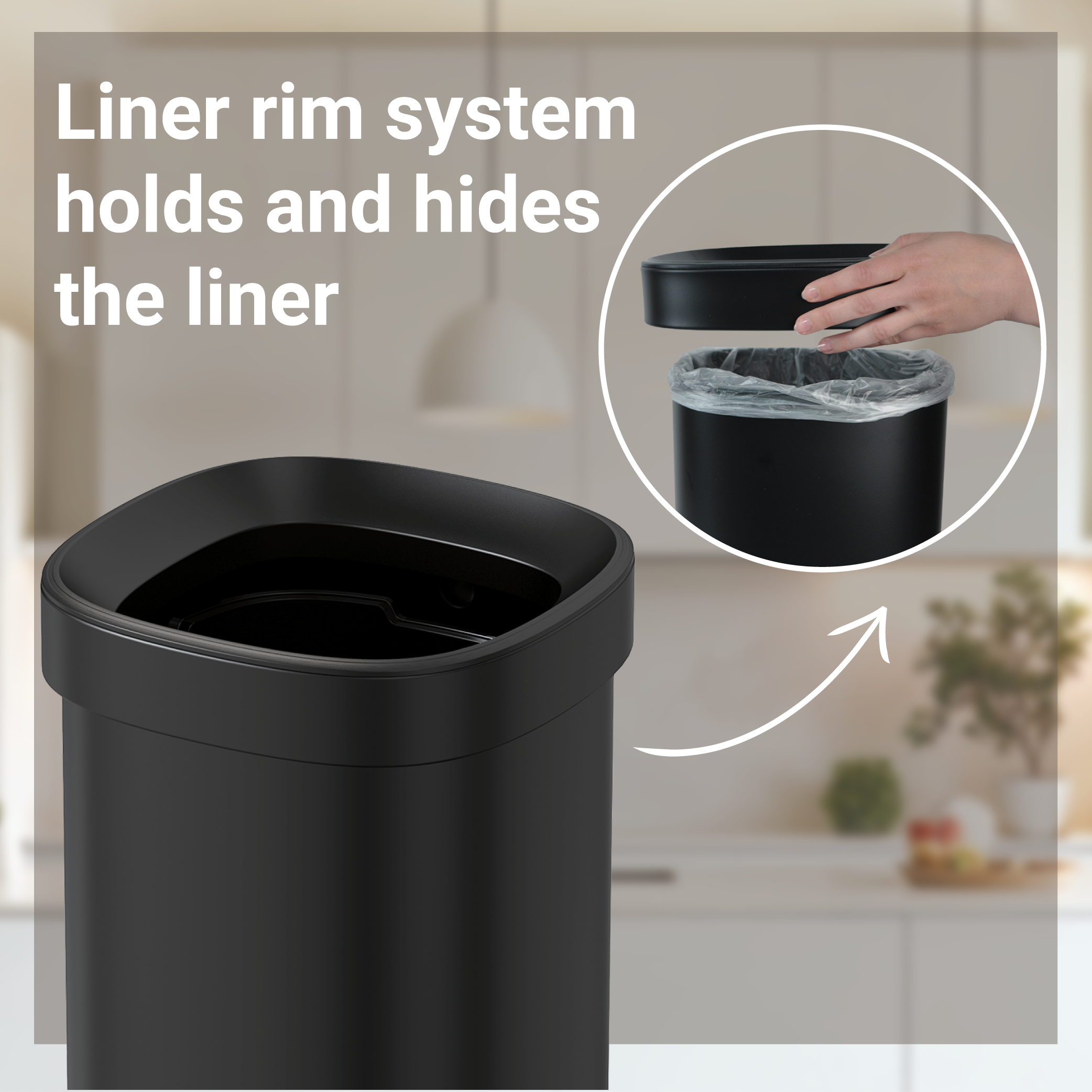 Speciaal ontwerp: afval wordt gedeeltelijk verborgen door de bovenrand, voor een netter en schoner uiterlijk- ✓ Linerrandsysteem houdt de liner vast en verbergt hem